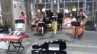 Music everywhere all kinds and good. Get a beer, sit down, listen to music, walk through the craft stalls, what a way to kill a day. We even  went to a quartet mini concert in a beautiful chapel. We did have to sit on  the  most hideous pews, they really like to  make the faithful suffer, but the group was very good and we enjoyed it. Then walking back toward the station an impromptu group complete with grand piano and just there in the shopping area thrilled us with their music.